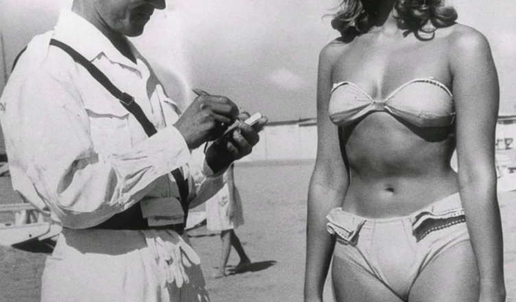 Černobílý snímek, který se v posledních letech stal virálním, ukazuje muže v bílé uniformě, jak stojí vedle mladé ženy v bikinách na pláži. Uživatelé sociálních médií často tvrdí, že tento okamžik byl zachycen v italském Rimini v roce 1957. Nejčastěji sdílená verze příběhu je, že muž je policista, který ženě udělil pokutu jen za to, že měla na sobě bikiny.