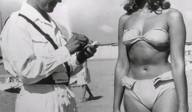 Černobílý snímek, který se v posledních letech stal virálním, ukazuje muže v bílé uniformě, jak stojí vedle mladé ženy v bikinách na pláži. Uživatelé sociálních médií často tvrdí, že tento okamžik byl zachycen v italském Rimini v roce 1957. Nejčastěji sdílená verze příběhu je, že muž je policista, který ženě udělil pokutu jen za to, že měla na sobě bikiny.