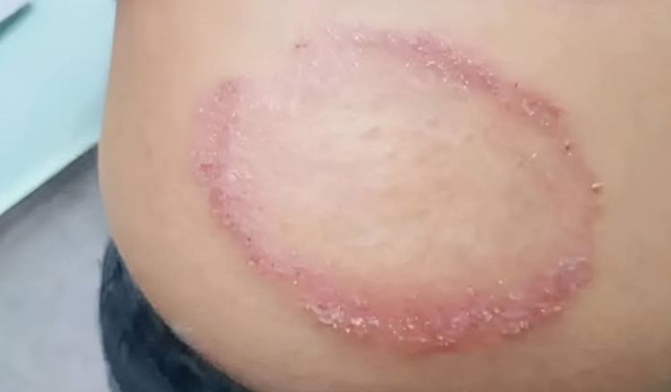 Léze se zpočátku často jeví jako „zdravé“, bez známek hnisu nebo výtoku. Tyto léze však mohou způsobovat silné svědění. Jak se infekce zhoršuje, léze se mohou množit a šířit do dalších oblastí těla. Jak se plaky zvětšují, jejich středy blednou. V pokročilejších případech se po okrajích plaků mohou objevit puchýře a hnisavé vřídky.