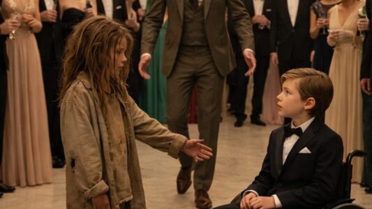 Holčička se jemně naklonila dopředu a zašeptala: „Dovol mi tančit s tvým synem. Pomůžu mu chodit.“