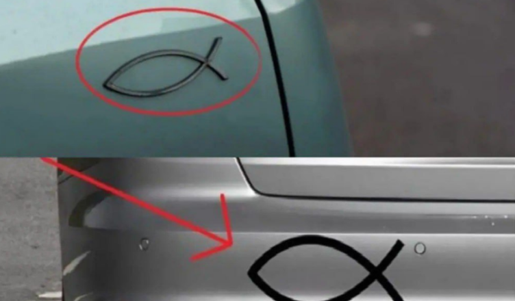 Na zadní straně auta se ryba stává méně o podívané a více o záměru.